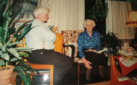 Elis Rådman och Inga Willför i diskussioner julhelgen 1987- 1988. Kvinnoprästfrågan torde ha varit aktuell.
