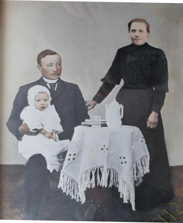 Johannes Forsman / Forsén f. 1875 med sin hustru i gifte 1, Johanna Forsman f. Kuni 1873. Med dottern Irene Forsman f. 1907. Bönder på Kuni, Skräddaris.