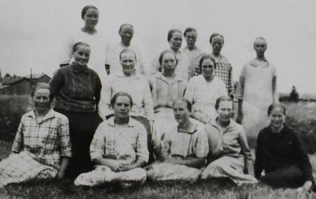 En del av kvinnorna i Vassor fria församling samlade för fotografering vid bönehuset i Trätgärdan år 1927. Första raden, från vänster: Katarina Wik, Gerda Åberg, Ester Rabb, Ida Wik g. Svarvar, Anni Klemets. Andra raden, från vänster: Maria Östman (g. Klemets), Anna Wiik (Postis Anna), Sigrid Wik, Hilma Örn. Tredje raden, från vänster: Sigrid Klemets, Maria Wik (Nygols), Irene Hinders, Davida Vasberg, Maria Vasberg g. Örn, och Sigrid Heir g. Hannus