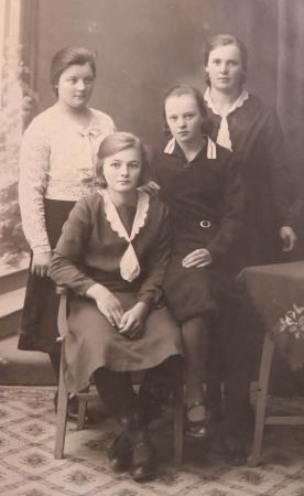 Bakom: Berta Lundberg g. Österbald och Ingrid Östman g Åberg. Sittand: Elvi Norrgård g. Mattlin och Wivi Östman g. Kultti