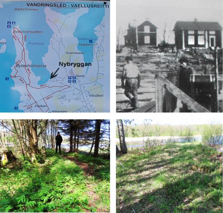Nybryggan där Jean Sibelius och Aino Järnefelt tog i land på väg till bröllopet som skulle hållas på Tottesunds militärboställe. Roddare från Skatan i Kvevlax var Anna Brita Hurr f. Mälsor. Bilden nere till vänster visar den stadigt byggda bryggan som då år 1892 bör ha stått en god bit över vattnytan. Nere till höger ser vi en förlängning som gjorts senare med fyllnadsjord. Kartan upp till vänster visar placeringen nära Herrgården. Uppe till höger är Haga Britos stuga på Skatan i Kvevlax. Skatan var en viktig fiskehamn. I Vassor bys historia IV på sidan 504 finns mera om bröllopsfärden och mera om "Haga Briit" finns på länken. Läs mera...