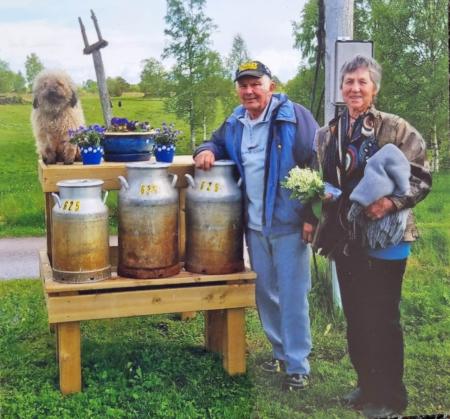 Eva-Lena Storbacka Skriver: "John Storbacka och Inga-Britt hos mig i Rättvik i byn Nedre Gärdsjö och mjölkrukorna är från Solf min moster Margit. Inga-Britt är född Finne i Voitby. En mardröm för stackarn som stod på mjölkbilen och skulle lyfta krukorna på laven. Krukorna var bekväma för bonden men ca en meter för låg för bilens personal skulle kunna lyfta utan skador."
