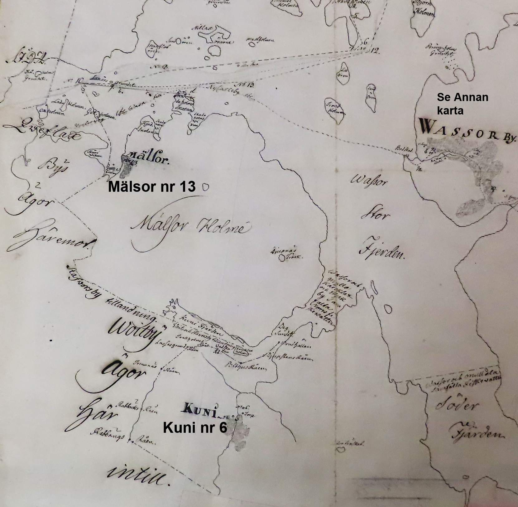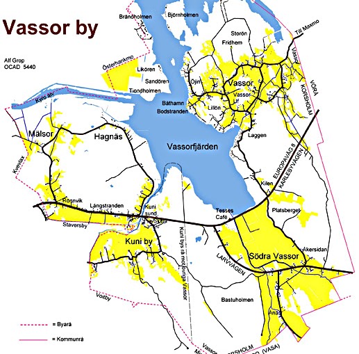 Vassor, Södra Vassor, Kuni, Hagnäs, Rönnvik och Mälsor. Alf Grop har gjort kartan