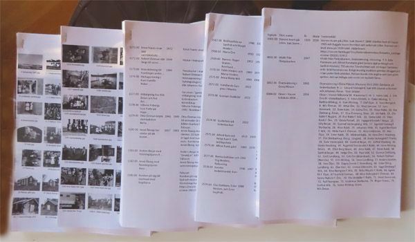 I november 2024 skrevs fotoarkivet ut på papper. Texterna fyllde 308 sidor och bilderna, med 36 bilder per sida, blev 92 sidor. Gunvor Svarvar har utskrifterna och läser igenom dem för att hitta sådant som borde korrigeras. Vi tackar för det arbete hon sätter på sidorna.